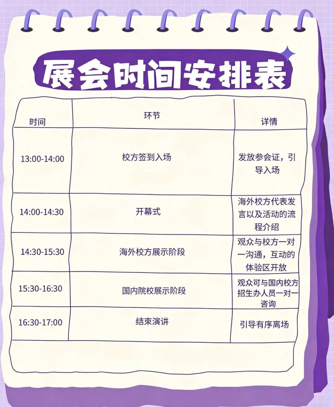 本次展会将汇聚20+所国外大学,家长们可以在这里一次性获取多所国外名校的招生信息,并了解到国内外教育理念和多样化的课程设置,实现一站式对比,无需再花费大量时间逐一查询和筛选。