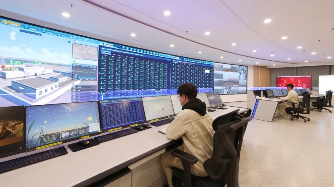 在推进项目工程建设的同时,西北新能源同步布局全流程智慧化建设,以数字技术赋能绿电基地全生命周期高效运营,建成了西北区域集控运维中心,目前已成为这座戈壁绿电高地的“智慧大脑”。