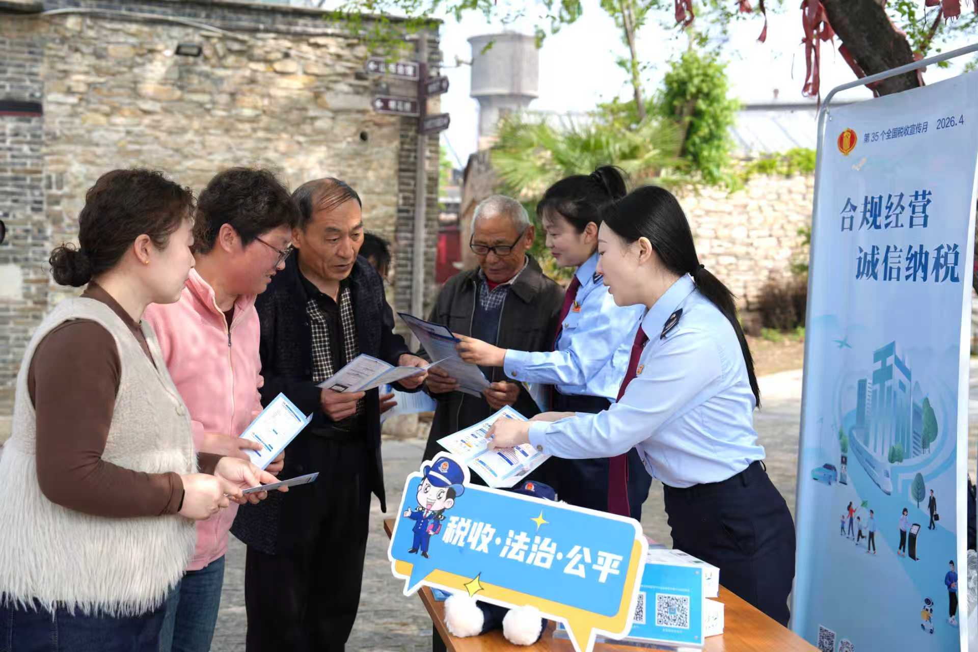 繁花载途,国家税务总局泰安市岱岳区税务局税务人员来到泰安市岱岳区大汶口古镇,将汶河古渡商贾文化和文旅新貌、合规理念相融合,开展“感悟文化传统 倡导合规风尚”税收普法宣传活动,在山西街老戏台、明石桥等沿途景点设置打卡点,通过税法问答、政策宣讲、税史介绍等形式传递税法知识,为税法宣传叠加商贾文化与税收历史脉络,增强普法记忆点。