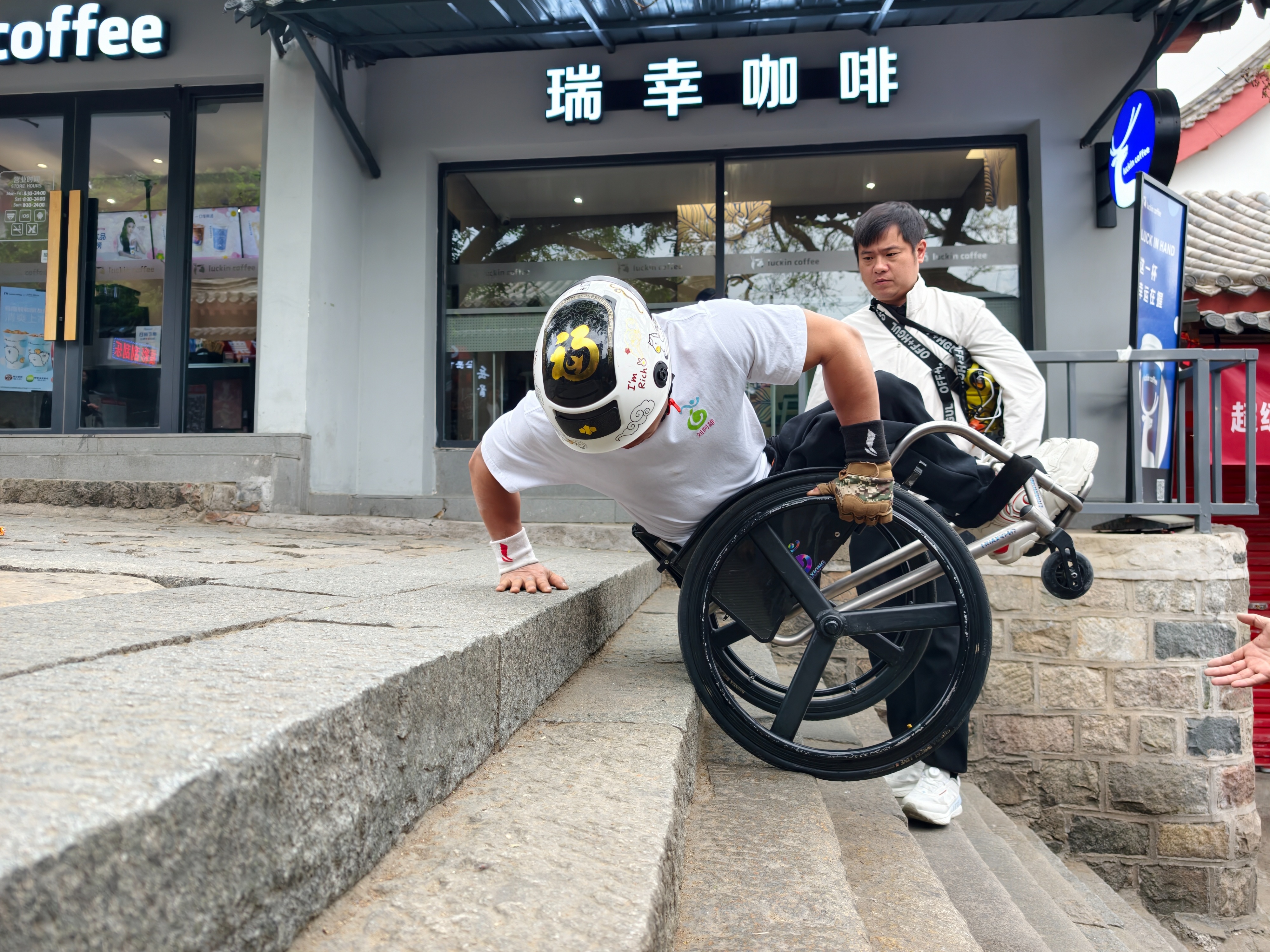别人用腿,他用双臂 “轮椅奔跑者”开启泰山极限挑战