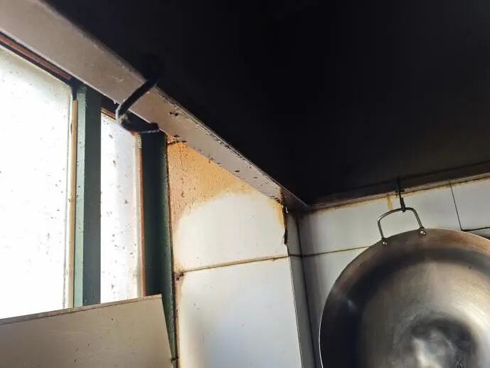 2.水池生锈,油烟机未及时清理,垃圾桶未盖盖;
