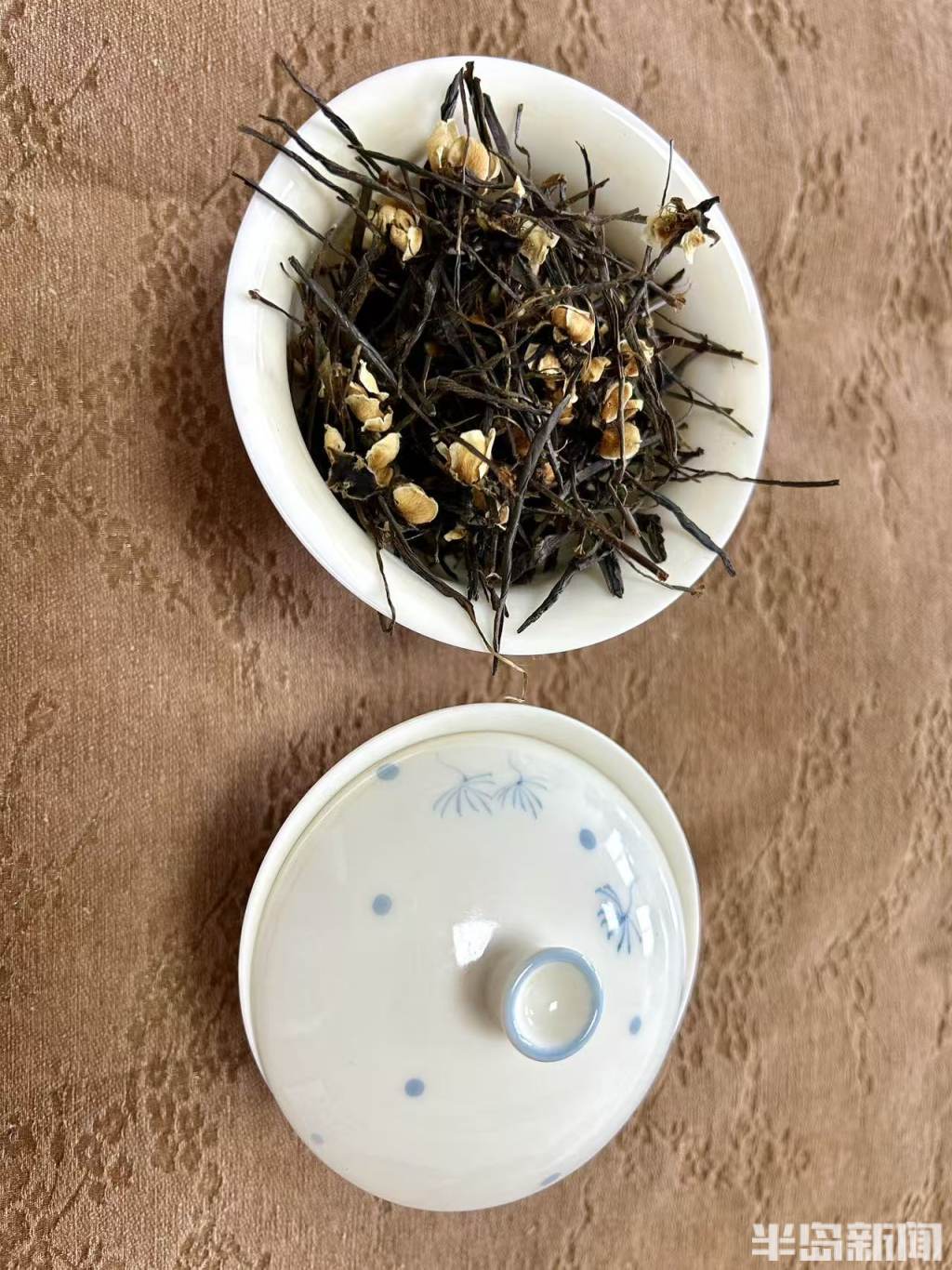 谈话间,茶场工作人员将刚出锅的梨花崂山红茶摆到大家面前,咖啡色的茶叶间点缀着泛着白边的梨花,颜值与口感兼具。“这款茶以四月崂山头春大田茶为基底,沿用高级红龙须工艺,匠心炒制。茶汤清香雅致,既有梨花清雅脱俗的冷香,又含崂山茶鲜爽甘冽的本味,兼具绵柔香甜、醇厚绵长的底蕴,值得细品。而且新茶要醒两三天,到时候香气会更怡人。”茶场工作人员介绍说。