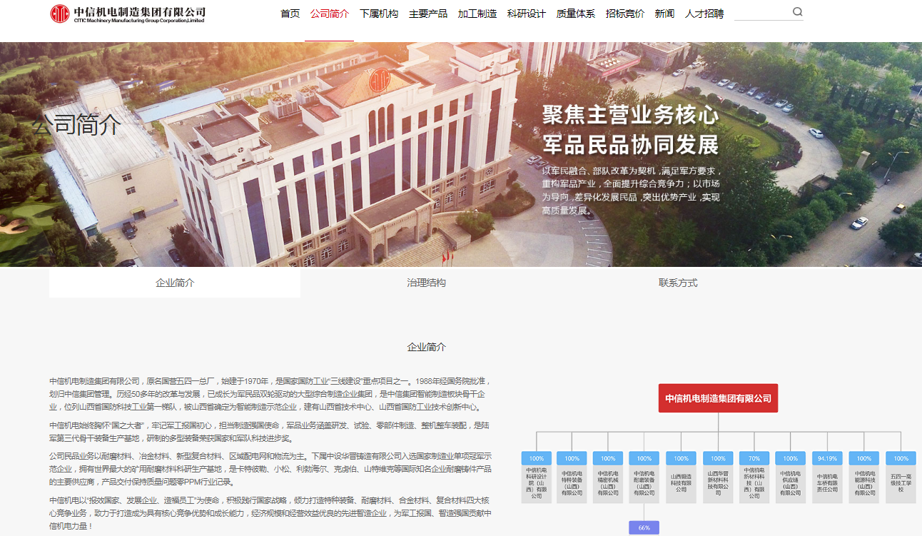 据中信机电制造集团官网介绍,公司历经50多年的改革与发展,已成长为军民品双轮驱动的大型综合制造企业集团,是中信集团智能制造板块骨干企业。公司军品业务涵盖研发、试验、零部件制造、整机整车装配,是陆军第三代骨干装备生产基地。公司民品业务以耐磨材料、冶金材料、新型复合材料、区域配电网和物流为主。