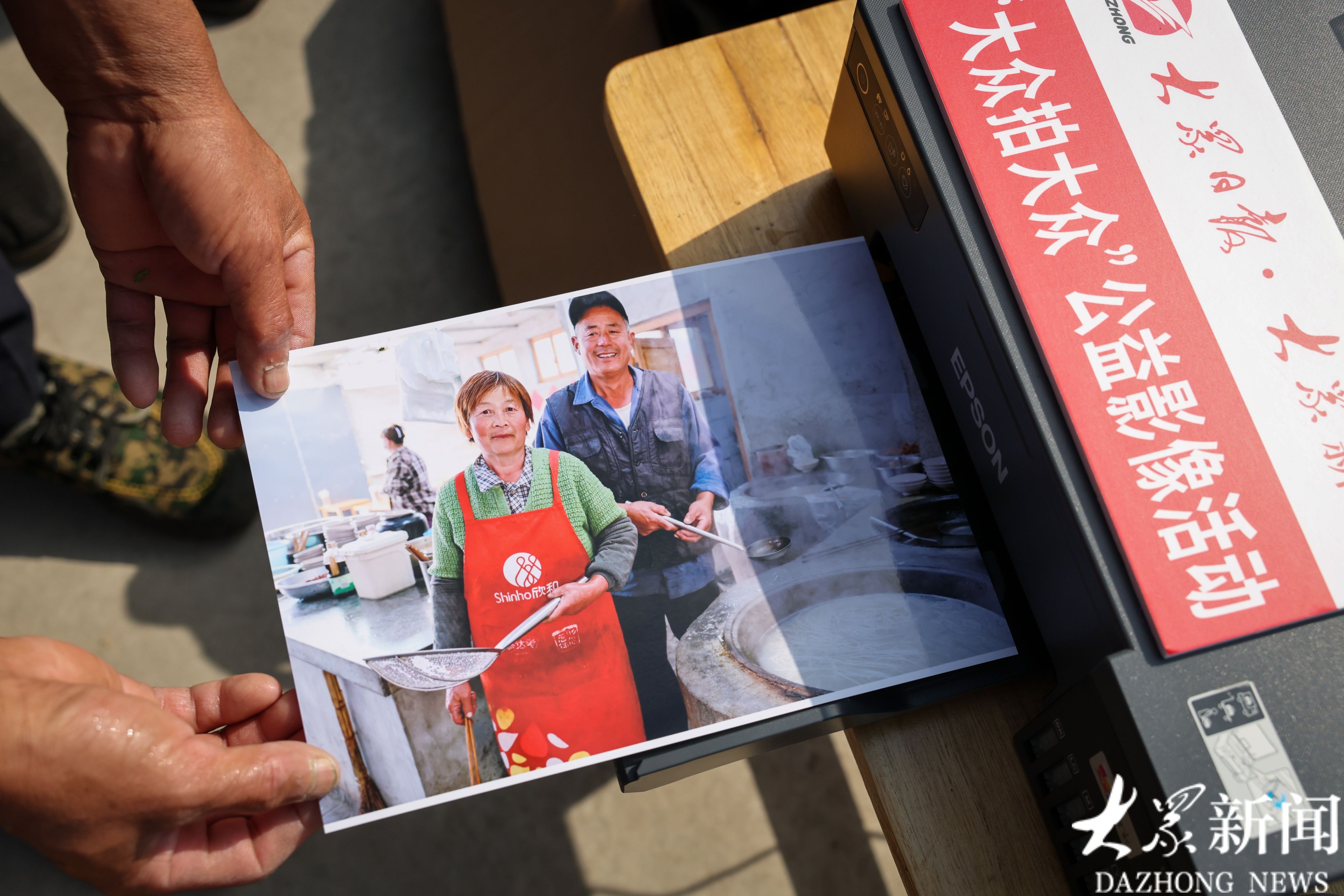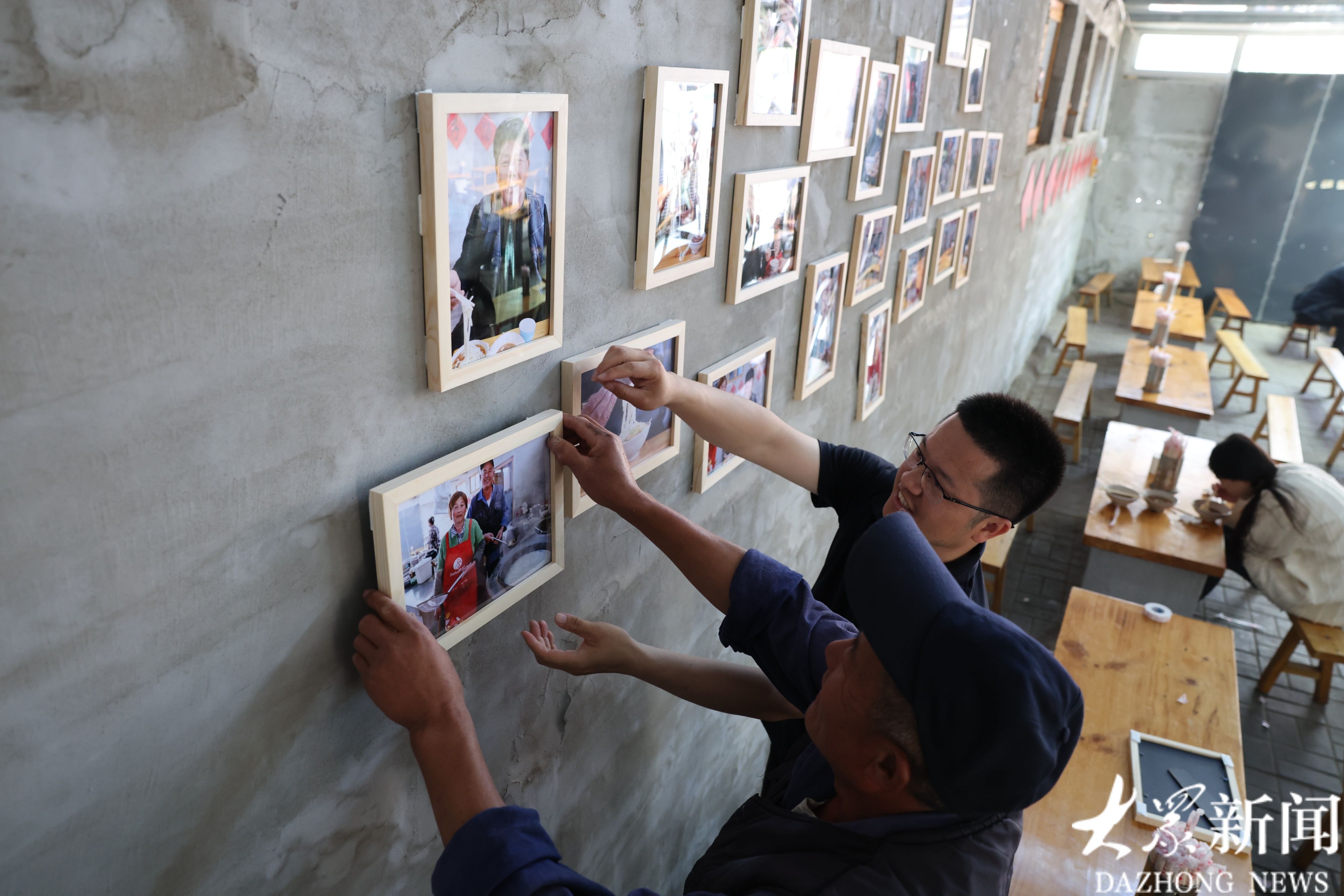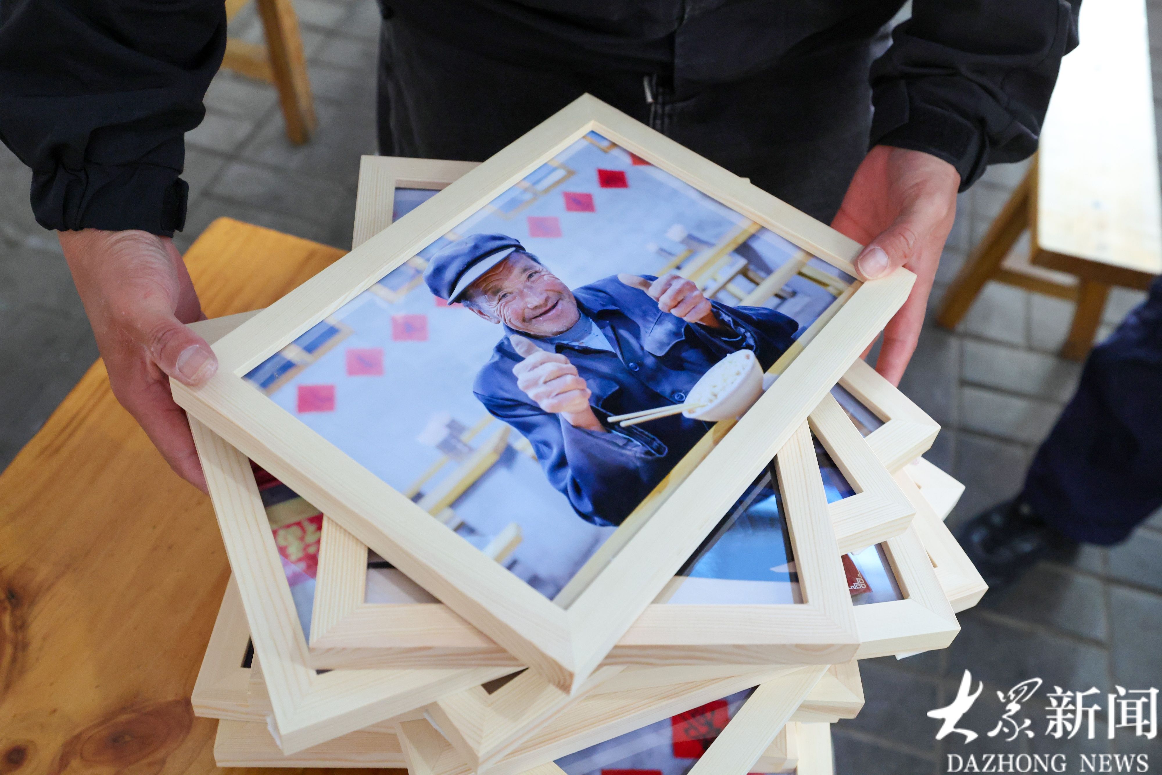 “大众拍大众”为刘荣学夫妻拍摄并打印了照片,装框后也挂在面馆的墙上,两口子自己为自己的面馆代言。