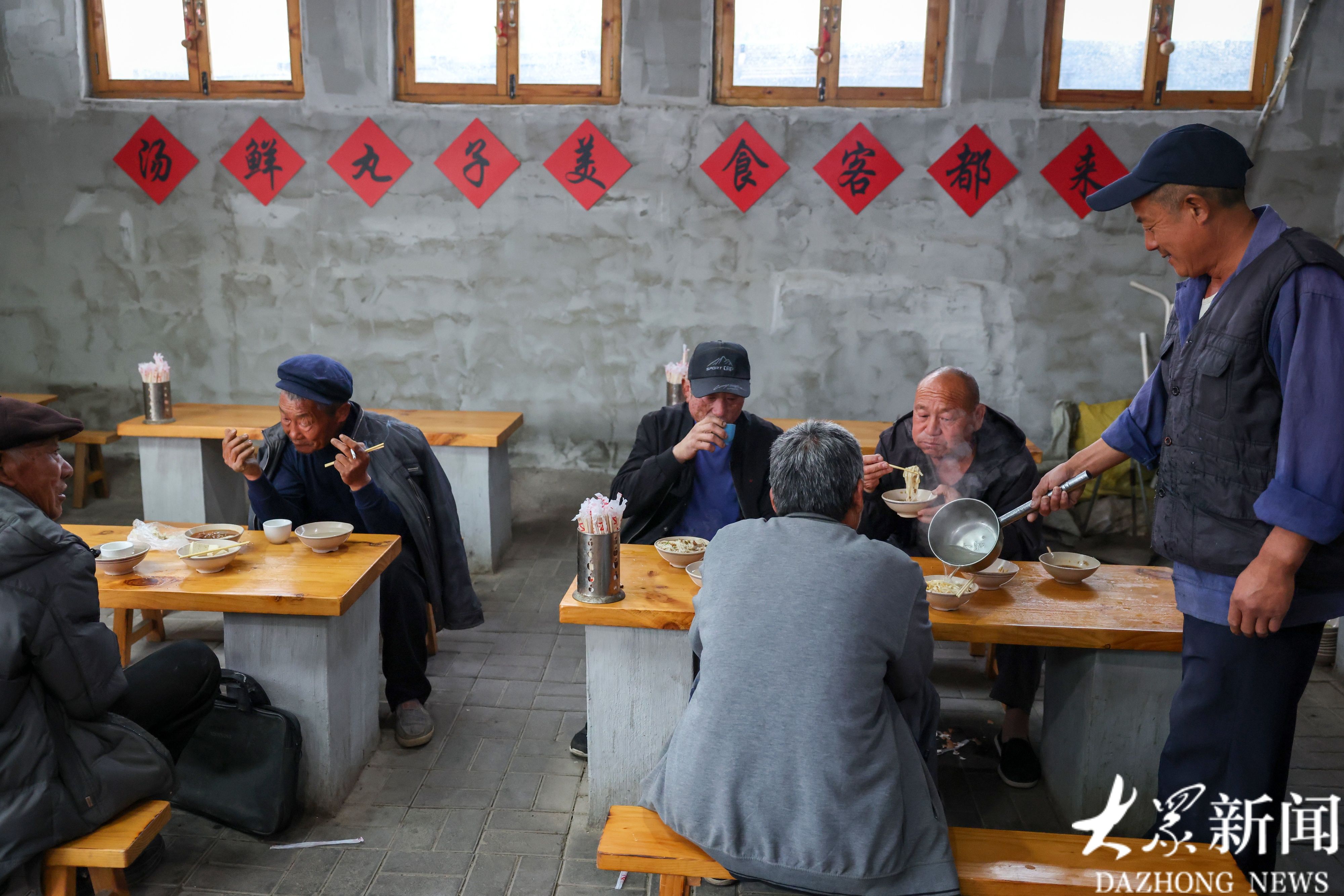 刘荣学关注着老主顾的碗,不时为他们加点面汤。