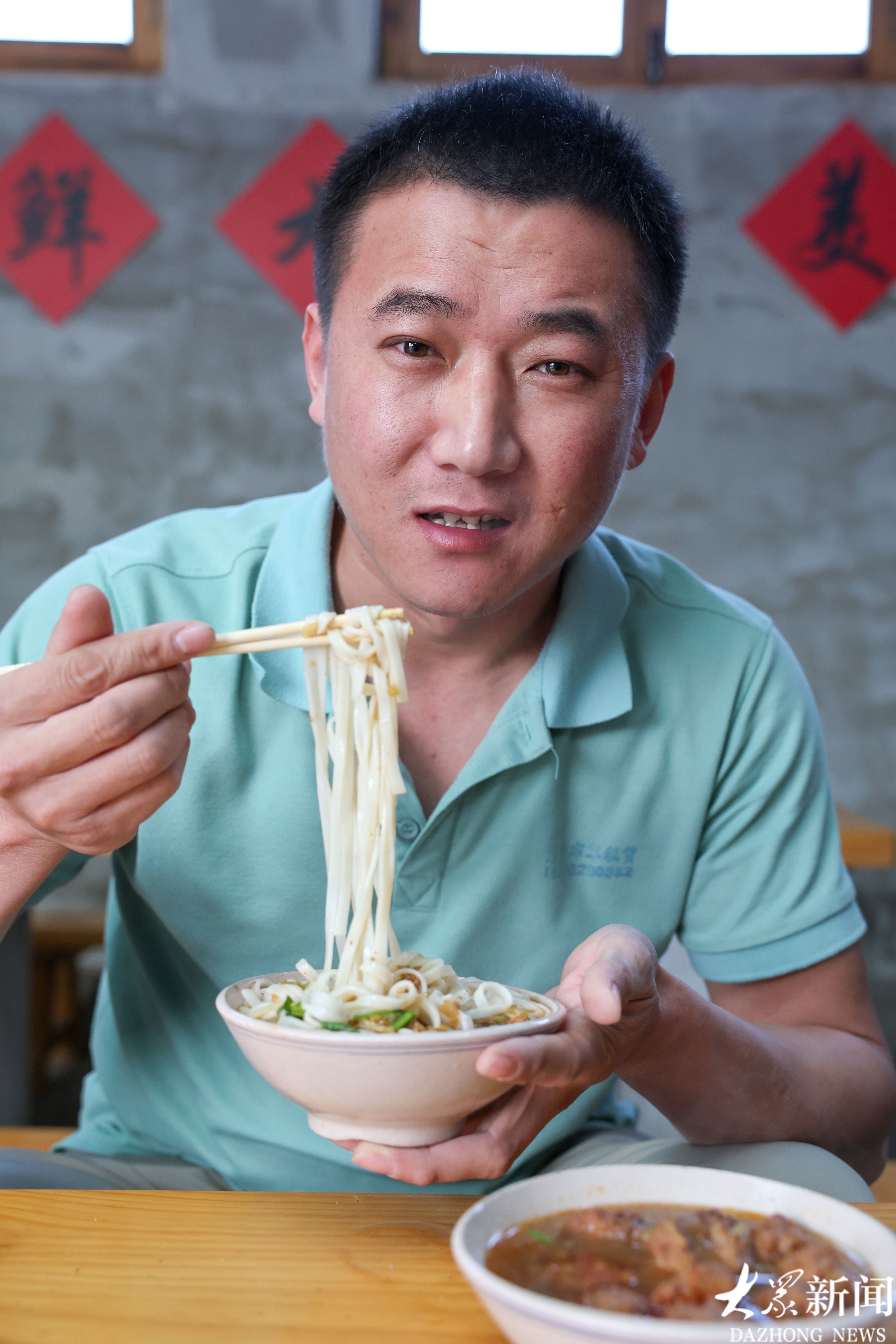34岁的李弘强家住大集附近,经常来吃面,他愿意为两元面馆代言。