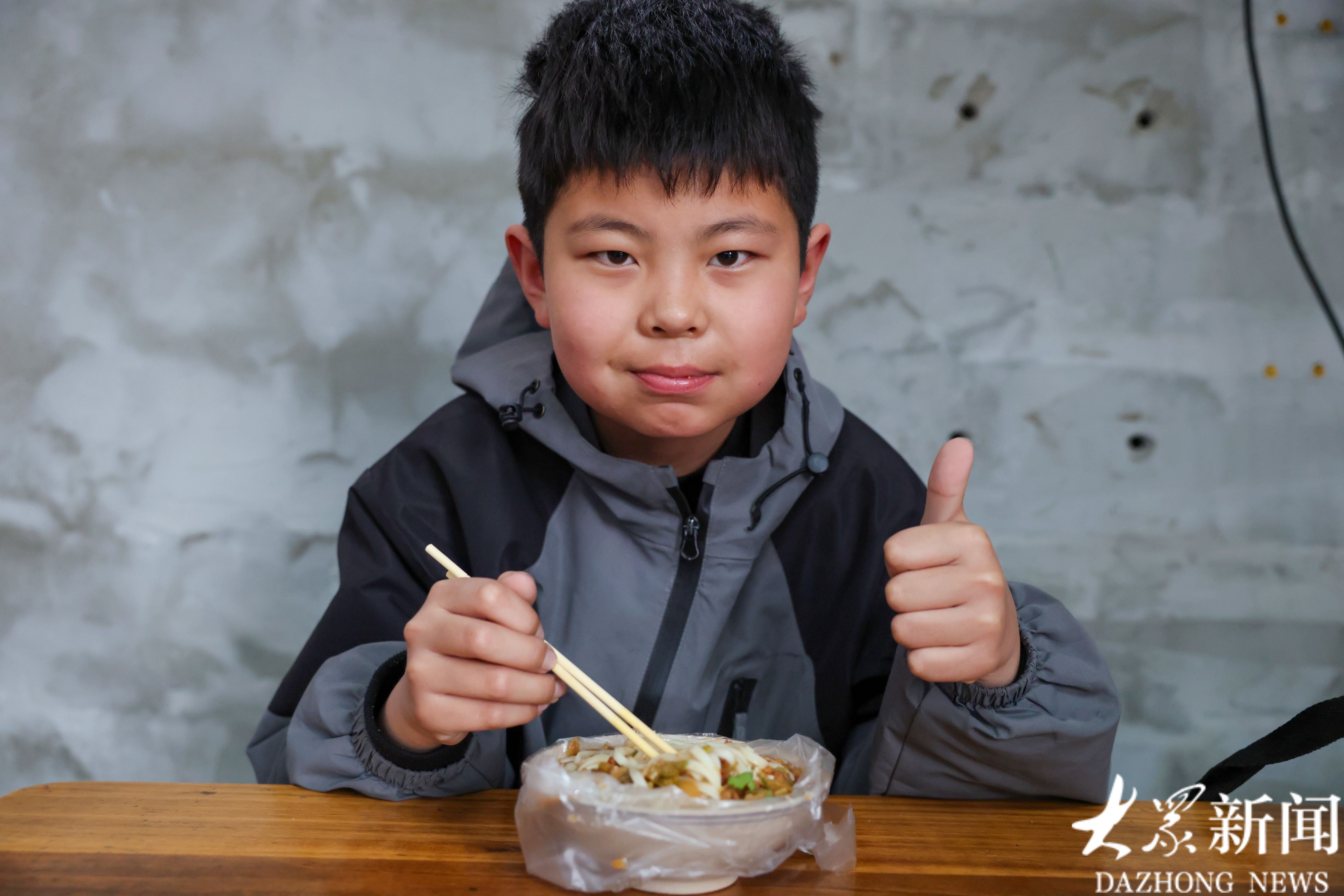 一位不愿意透漏名字的小学生有点羞涩,但也愿意为两元面馆代言。