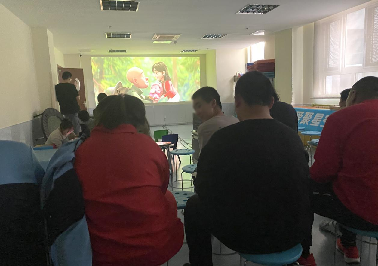 据了解,孤独症儿童普遍存在感官敏感、适应能力较弱等情况,较难进入公共影院观影。为弥补这一文化服务短板,青岛新农村数字电影院线有限公司主动将承载欢乐的银幕 “搬进” 康复机构。活动前,放映团队提前数小时到场,对设备反复调试,并对观影场地进行精心布置:柔和灯光、舒适座椅,以及专门设置的安静区,处处体现对特殊群体的细致关怀,力求为孩子们打造安心、愉悦的观影环境。