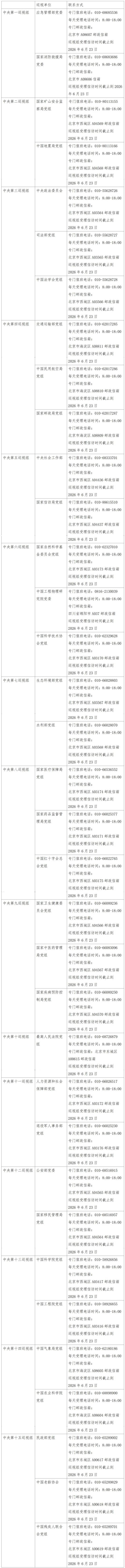 已进驻中央巡视组联络方式: