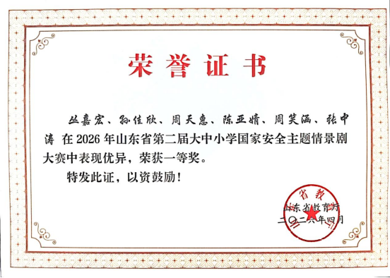 4月14日,2026年山东省第二届大中小学国家安全情景剧大赛决赛在威海职业学院圆满落幕。菏泽家政职业学院选送的作品《抉择》从全省高校近600件参赛作品中脱颖而出。在与20所高校的激烈角逐中,该作品凭借95.08分的优异成绩,一举夺得高校组一等奖,为学校赢得了荣誉。