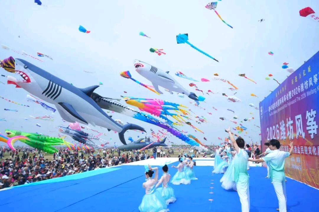 “潍九味千年药香润潍坊”创意风筝将道地药材与风筝技艺相融,尽显地域文化底蕴。长串风筝绵延天际、灵动飘逸,深蓝砺剑、花篮等巨型软体风筝造型逼真、栩栩如生,潮流创意风筝也惊艳登场。运动风筝翻飞腾跃、动感十足,夜光风筝流光溢彩、梦幻唯美,传统非遗技艺与现代科技创意碰撞交融,全方位展现风筝文化的多元魅力、传承活力与时代风采。