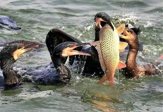 叹!鸬鹚水中协作,合力捕鱼、共享鲜活。