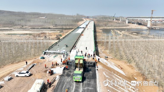 自开工以来,承建方山东交工建设集团组建专业施工团队,克服地质条件复杂、施工点位分散等难题,倒排工期,稳步推进各工序施工,工程建设呈现“主体工程快推进、配套工程跟得上”的良好态势。在路基施工区域,记者看到大部分路段的路基已基本成型,宽阔的路基向远方延伸,作业人员正加紧进行台背回填等收尾作业;桥梁施工现场,桥面铺装工人正进行钢筋绑扎、混凝土浇筑,一道道工序衔接紧密。