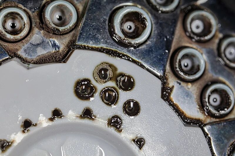 当花洒出现水流变细、分叉,出水不畅,出水孔被白色或黄色水垢堵塞,或花洒表面出现霉斑、水垢时,就说明该清洁了。