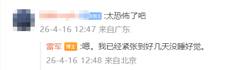 在评论区雷军回复网友称,自己已经紧张到好几天没睡好觉。他还回应网友对于黑稿的忧虑,表示“咋办呢?不能因为有黑稿,我们就不说话了?”