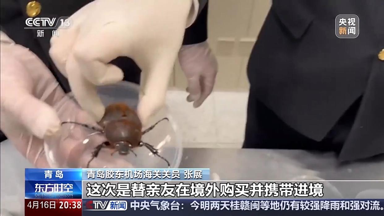 青岛胶东机场海关关员 张展:旅客自述其亲友在境内经营“异宠”售卖生意,这次是替亲友在境外购买并携带进境,这批甲虫售价在几百元至上千元不等。