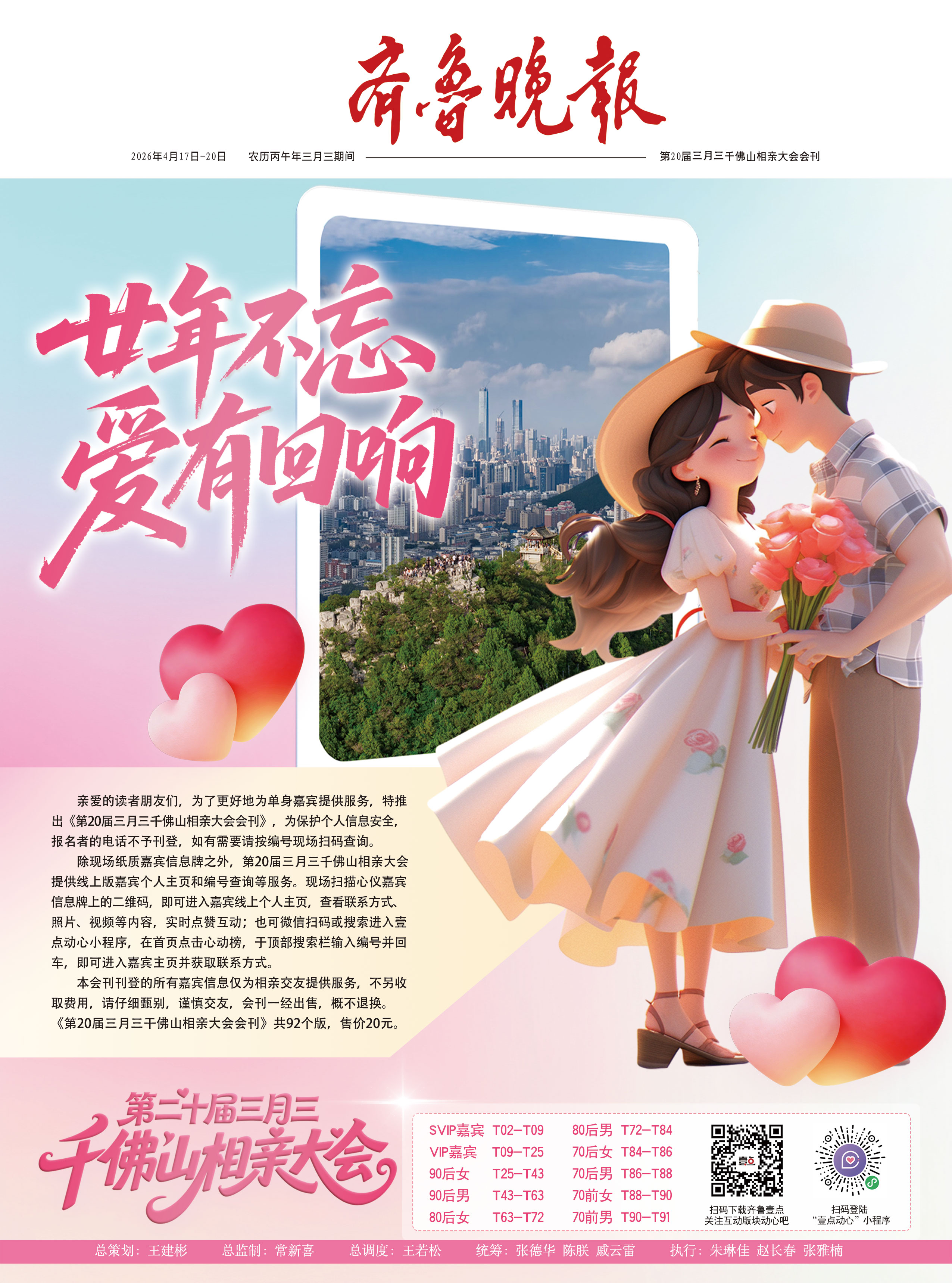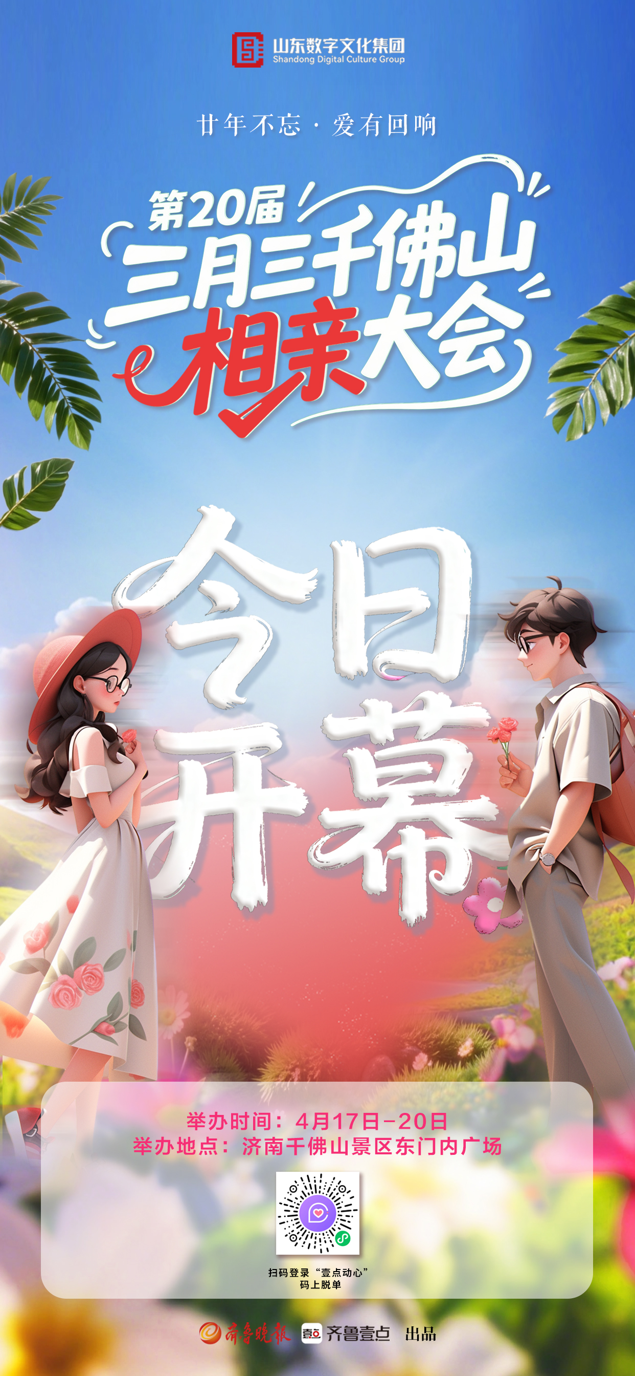 廿年不忘,爱有回响!4月17日,由山东数字文化集团指导,齐鲁晚报·齐鲁壹点主办的第20届壹点动心·三月三千佛山相亲大会在济南千佛山风景区东门内广场浪漫启幕。即日起至4月20日,数千优质单身男女嘉宾将在此齐聚,泉城热恋模式开启,快喊上你的单身小伙伴,来一场浪漫的邂逅之旅吧!