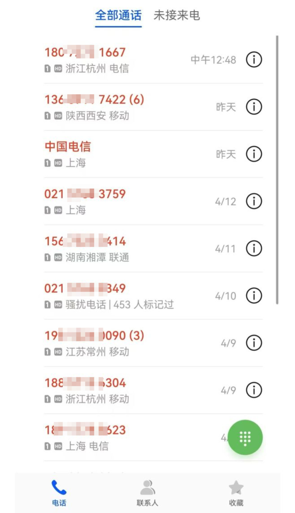 △“芝麻”收到的部分骚扰电话。