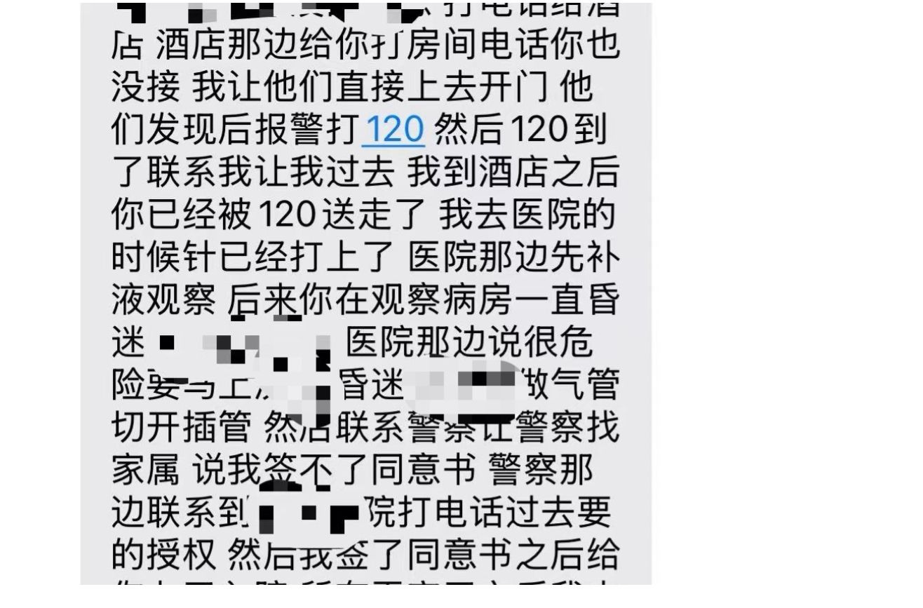 △朋友告诉“芝麻”她昏迷后的情况。