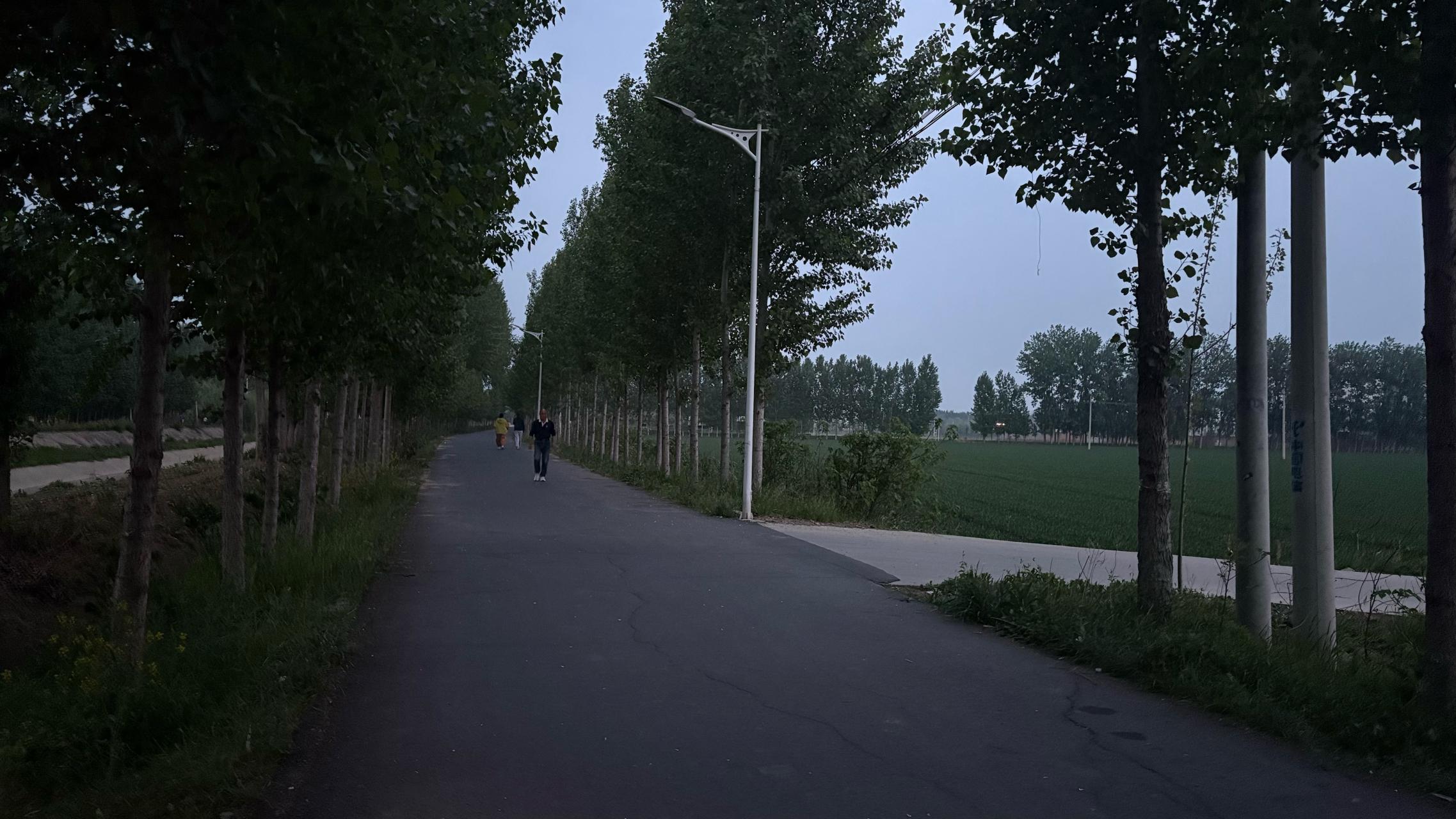 一条国道从柏香镇中穿过,临街多店铺和民居,民居后边则是大片田地,田地间有道路相连,时有电动车、小三轮车驶过。4月,田地里小麦绿意正浓,田埂边还可见此前种植的玉米枯杆。