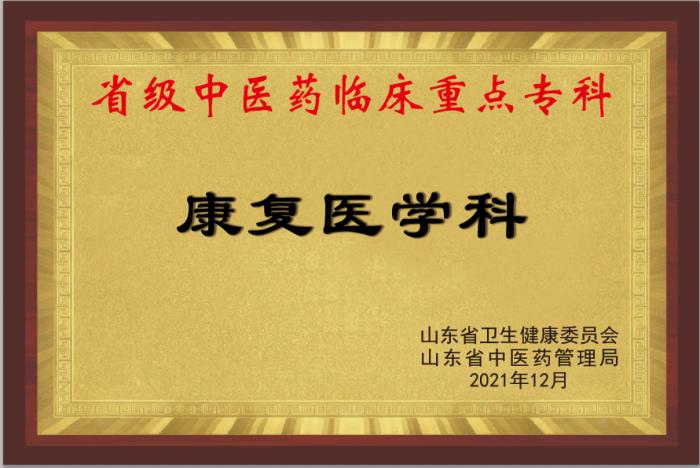 凭借扎实的学科建设与技术实力,科室先后被评为山东省中医药重点专科(康复专科)、滨州市临床重点专科,同时还是滨州市残联肢体残疾康复技术指导中心。