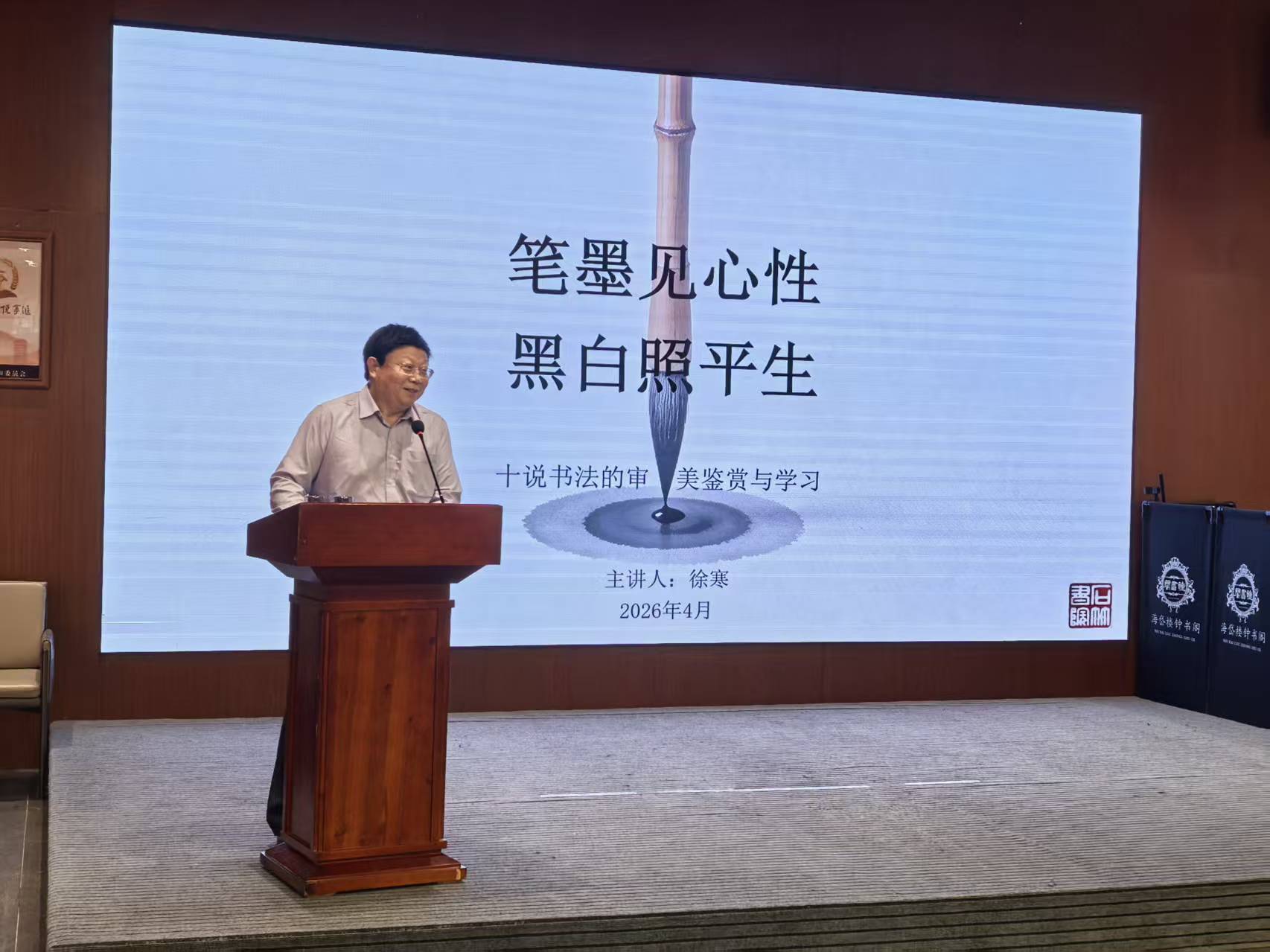 与寻常讲座不同,这场活动从一开始便带着温度。活动特邀中国书法家协会第五至七届理事、中国职工书法家协会副主席李纯博,围绕“书法与汉字的关系”及“审美缺失”等话题展开分享;文化学者、北京大学书法艺术研究所教授徐寒作了《笔墨见心性,黑白照平生——十说书法的审美鉴赏与学习》主题发言。从书法源流到人文精神,从临摹之法到审美之道,老师们各抒己见,金句频出。台下听众或凝神静听,或低头记录,海岱楼的玻璃窗外春水悠悠,窗内笔墨生香。