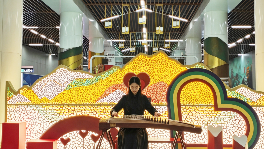 听春音,雅乐随行。特邀演奏者现场演绎古风音乐,让悠扬旋律为通勤路注入诗意。