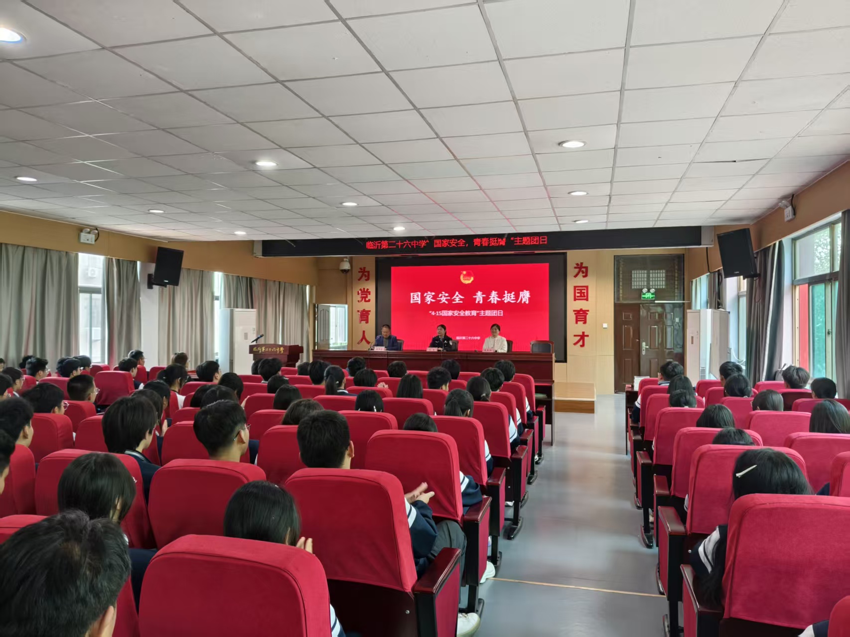 4月14日,临沂市公安局河东分局的民警们走进临沂第二十六中学,为师生们送去一堂生动有趣的国家安全法治课。