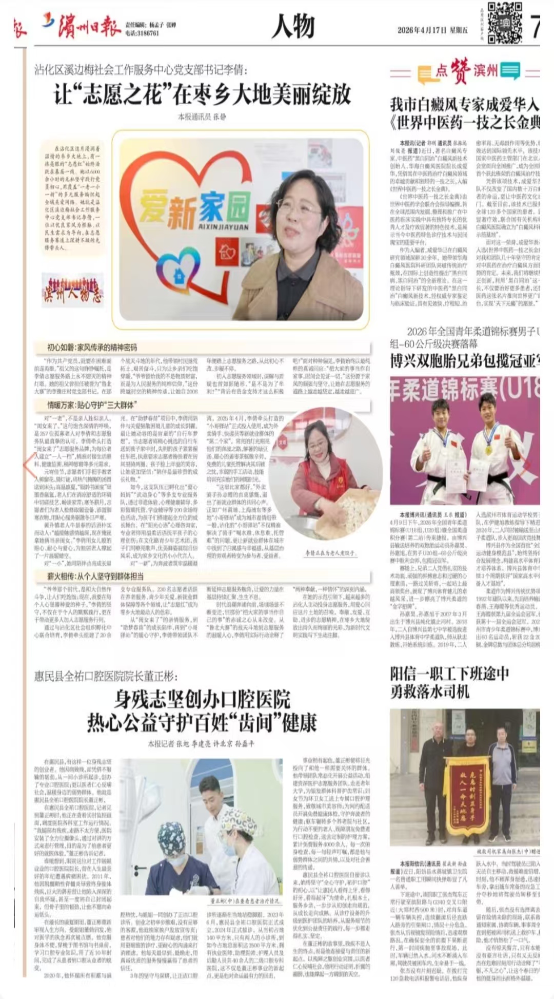 滨州日报/滨州网讯在惠民县,有这样一位身残志坚的创业者。他因病致残,却凭借不服输的韧劲,从一间小诊所起步,创办了专业口腔医院;更以医者仁心反哺社会,温暖身边的弱势群体。他就是惠民县全祐口腔医院院长董正彬。