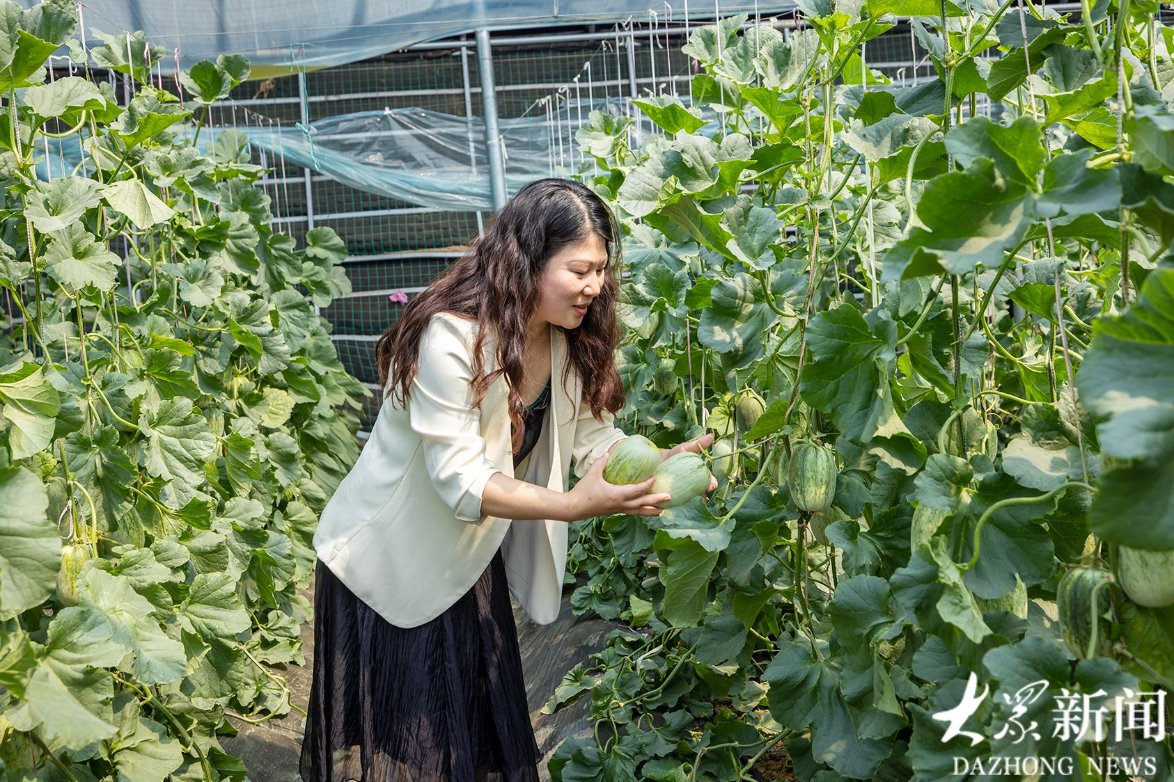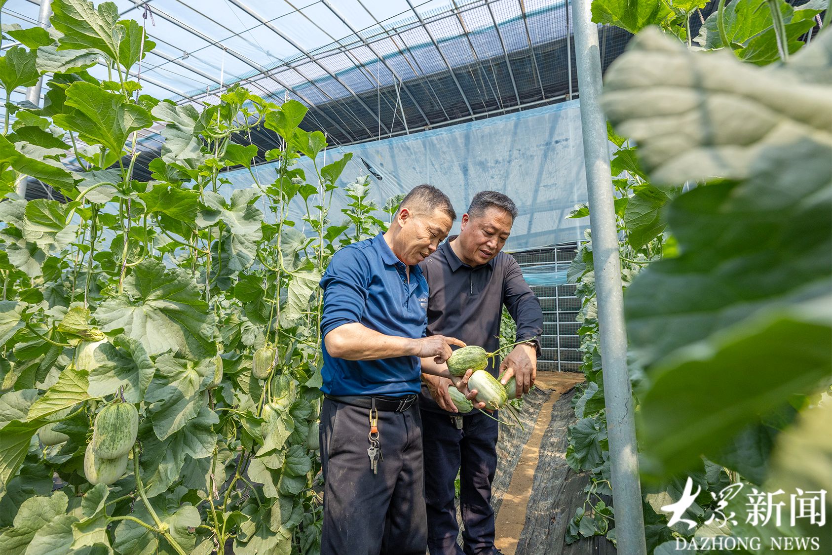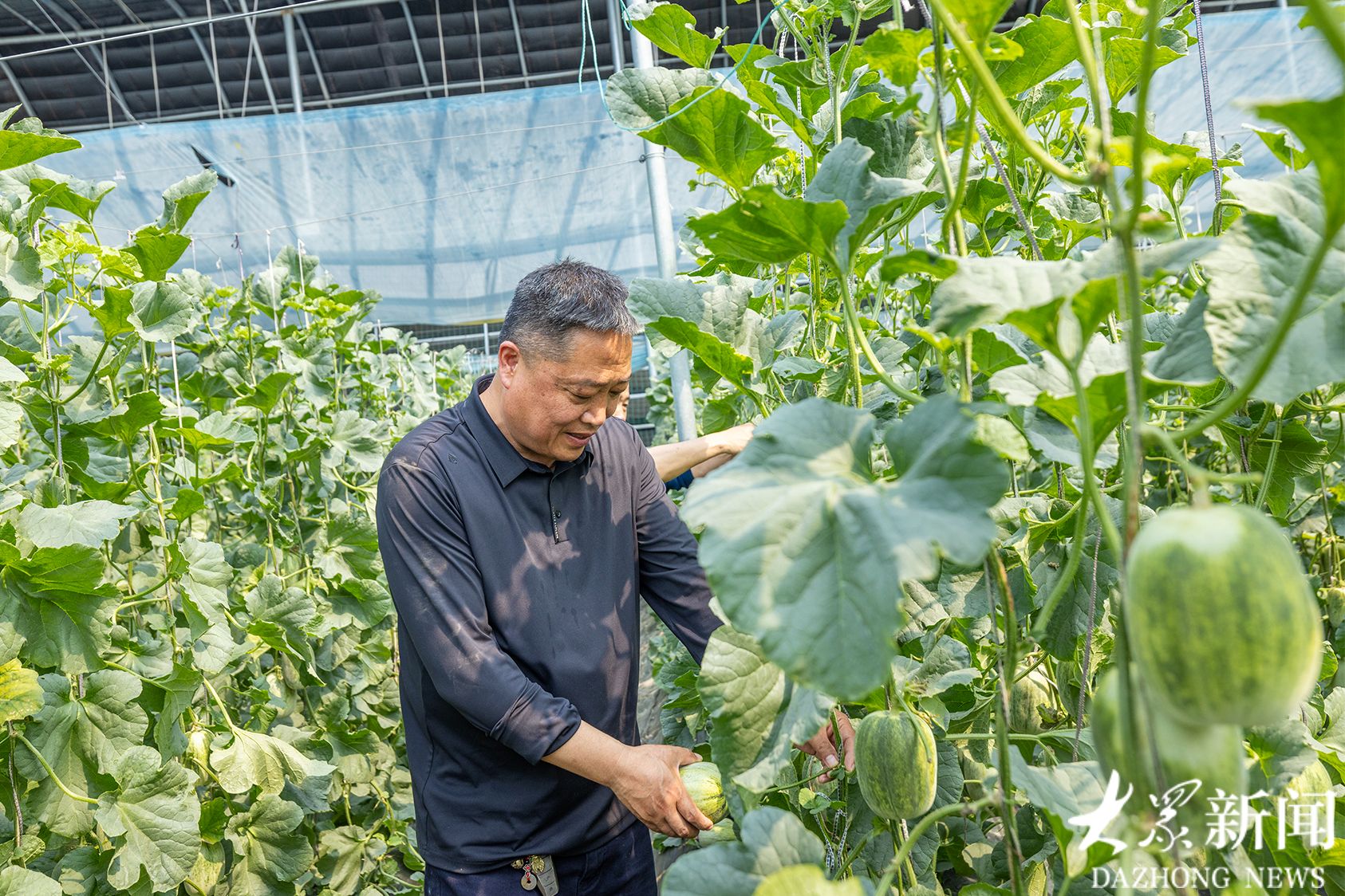 沿大汶河踏春,行至东平县后口头村,眼前近百座蔬菜大棚横亘在广袤的田野之上。随便走进一座大棚,眼前成串的甜瓜挂在藤蔓上,有的圆如满月,有的形似玉坠,青绿的表皮泛着水光。摘一个品尝,香气扑鼻,汁水四溢,鲜甜可口。问及甜香的秘诀,正在棚内摘瓜的东平县财金集团农业技术总工张维光说,这一茬的品种叫金冠簿皮甜瓜,施的是有机肥,还用了生态酶肥,早熟且提升了产量,口感更好了。