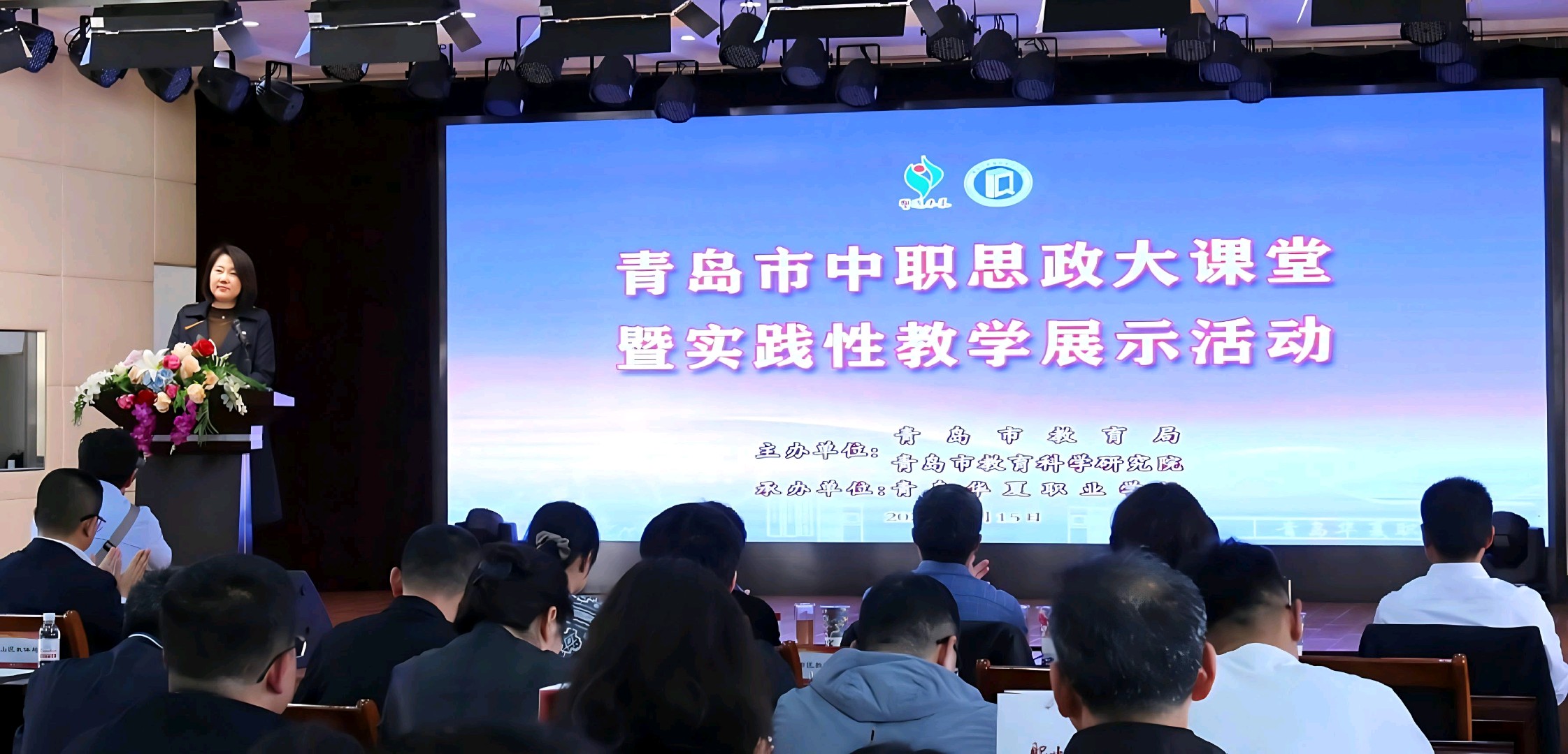 为全面落实立德树人根本任务,深化新时代学校思想政治理论课改革创新,推动思政课建设内涵式发展,4月15日,青岛市中职思政大课堂暨实践性教学展示活动在青岛华夏职业学校顺利举行。全市各中职学校分管领导、思政骨干教师等齐聚一堂,共同交流中职思政实践性教学的创新路径与实践成果。活动中,青岛市教科院中职思政学科教研团队围绕全市思政实践教学改革进展作专题汇报。