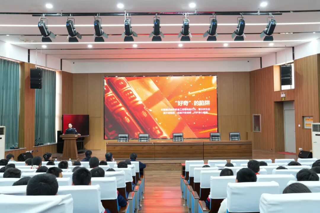 杨警官重点围绕《中华人民共和国预防未成年人犯罪法》以及新修订的《中华人民共和国治安管理处罚法》,结合近年来发生在校园及周边的真实典型案例,特别是针对校园欺凌、电信网络诈骗、青少年吸毒等易发多发问题,深刻剖析了违法行为的成因、后果及法律责任。通过一个个触目惊心的真实故事,让在场学生直观感受到“法网恢恢,疏而不漏”,以及违法犯罪行为对个人、家庭和社会造成的巨大伤害。