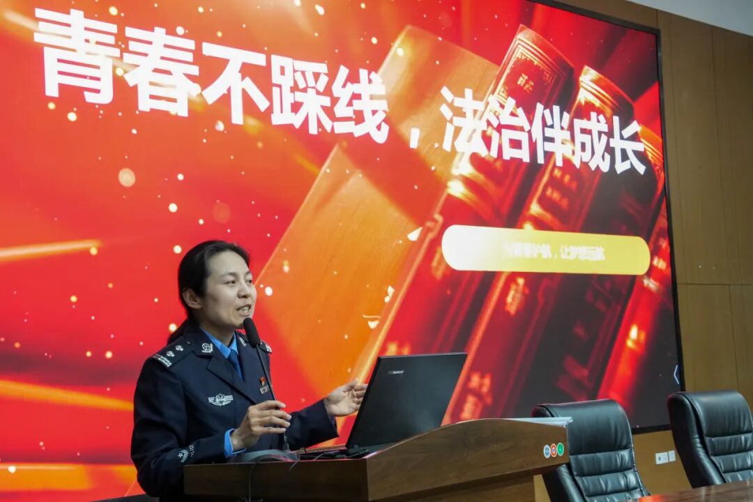 此外,杨警官还从“学会用法维权”、“远离不良行为”两个维度,教育引导学生要树立正确的世界观、人生观、价值观,自觉抵制各种不良诱惑,遇到侵害时要勇于向老师、家长或警方求助,学会运用法律武器保护自身合法权益。