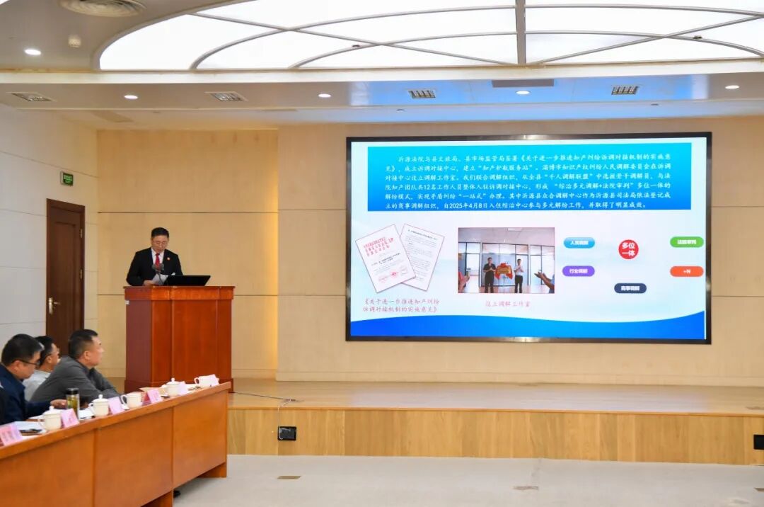 会上,王烨副院长围绕“全面建强诉调对接机制,构建‘府院联动+多元调解’纠纷治理共同体”、“全面优化流程衔接,构筑‘一专班+三团队’纠纷分流机制”、“全面做实司法兜底,构筑'指导调解+示范诉讼'纠纷化解模式”三方面全面介绍了沂源法院融入综治中心建设,建强诉调对接机制,全力打造知产多元解纷新模式的实践经验。