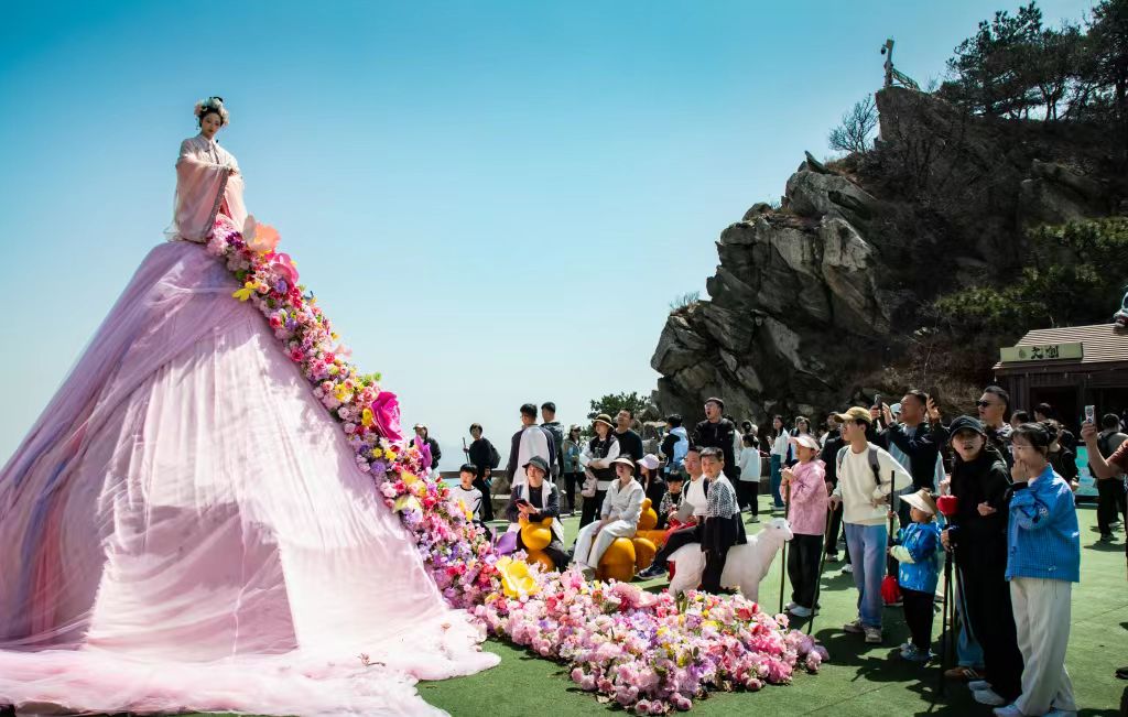 在沂蒙山龟蒙景区,春假首日便迎来了气势恢宏的千人学生研学团。孩子们徒步于山野之间,呼吸着“天然氧吧”的新鲜空气,在攀登中感受岱宗之亚的壮阔。景区内同步启动了沉浸式仙侠演艺,为师生们带来了独特的视听体验。据统计,得益于“学生免票、家长半价”的强力优惠,蒙山龟蒙景区及云蒙景区在首日迎来了客流显著增长,家庭踏青队伍成为主力军。