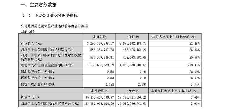 年报显示,2025年,公司实现营收162.23亿元,同比增长21.48%;归母净利润为26.80亿元,同比增长2.03%。一季报更为亮眼——营收32.91亿元,同比增长22.48%;归母净利润5.88亿元,同比增长26.32%。