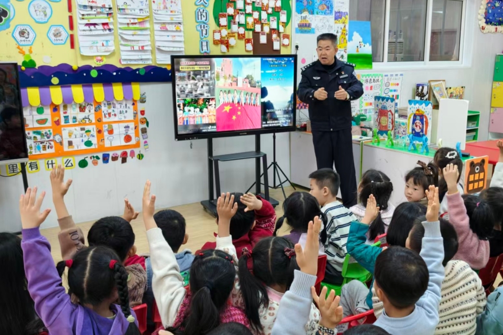 活动中,民警结合幼儿认知特点,围绕“交通安全”与“安全防范”两大主题展开讲解。交通安全环节,民警通过“提问抢答”调动孩子积极性,用“小斑马的条纹路”“红灯宝宝睡觉、绿灯宝宝上班”等形象说法,帮助幼儿牢记安全防范的要点。安全防范环节,民警全方位讲解儿童易走失高发场所、犯罪分子拐骗的惯用伎俩,通过观看动画结合提问的方式,用通俗易懂的语言向小朋友们详细讲解防拐、防电信诈骗安全知识,教他们遇到危险及时找老师或家长求助。在一问一答中小朋友们学到了各类危险的应对方法,增强了安全防范意识。