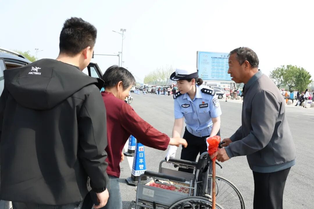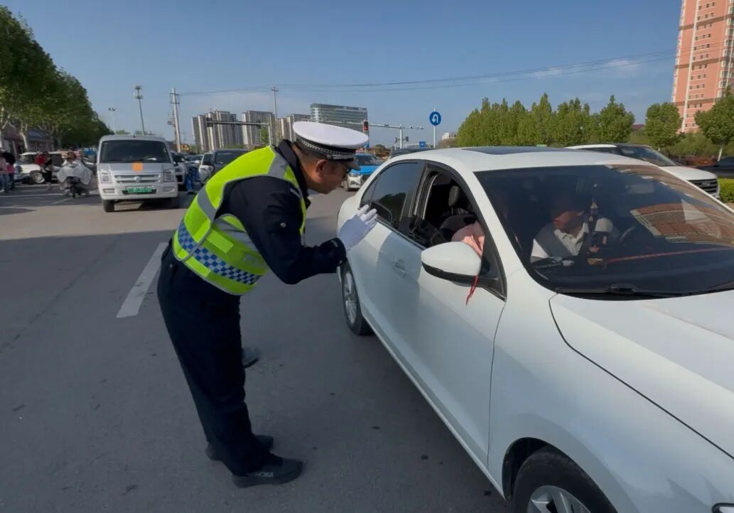 同时,大队坚守服务初心,延续节会便民举措,在牡丹园周边执勤点为过往游客提供路线指引、咨询解答等服务,对异地游客轻微交通违法实行“首违不罚”,用牡丹主题文创提示单替代传统罚单,让执法更有温度。