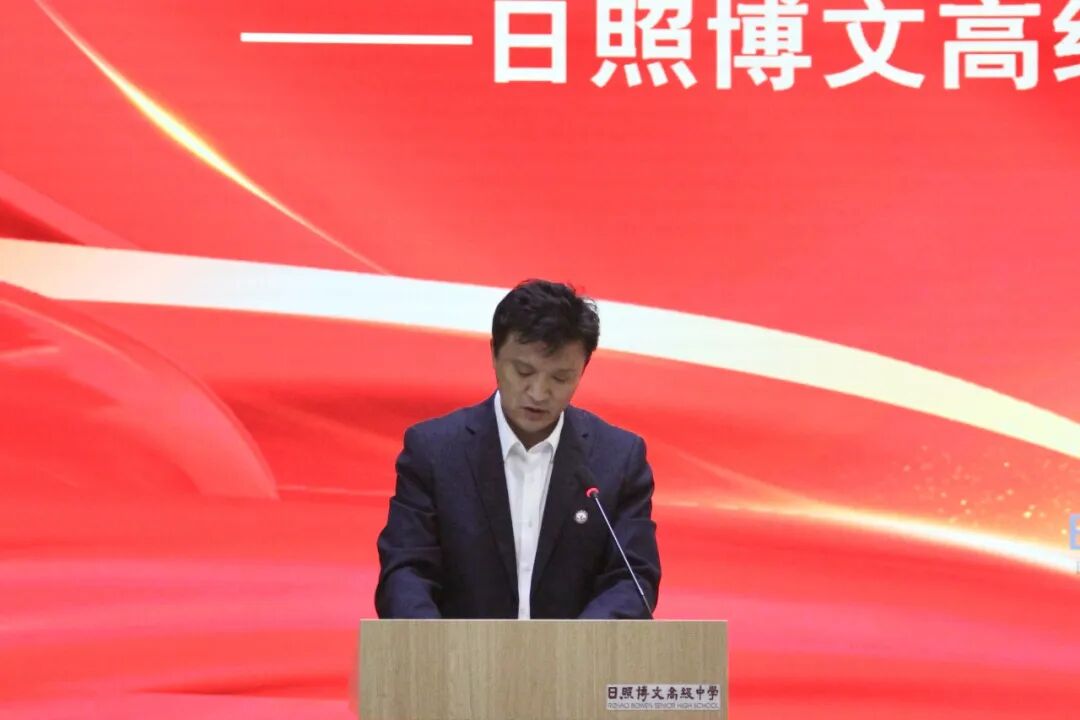 仪式进入最激动人心的环节。日照市教育局体卫艺科相关负责人宣读成立文件,郑重宣布:日照博文高级中学博雅艺体学院正式成立!