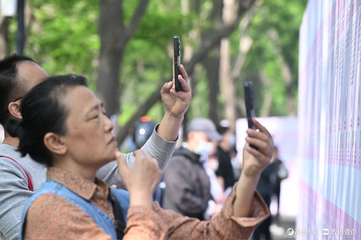 在现场,家长们不时地拿着手机拍下中意的信息牌,或者用笔记下来,为儿女们帮忙把把关。