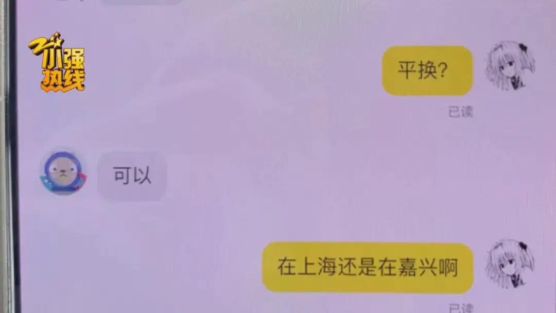 查看双方聊天记录,对方人在嘉兴平湖,小钱提出平换,对方爽快答应。
