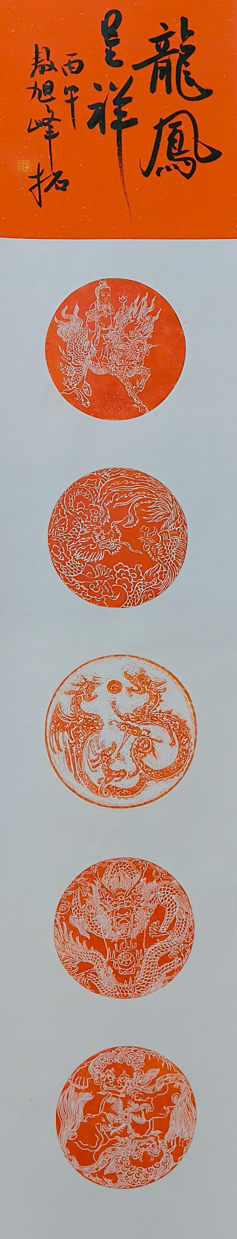敖旭峰深耕印款艺术领域多年,潜心钻研、精益求精,形成了独具特色的艺术风格。本次展览集中展出其精心创作的印款传拓作品200余件,全是崂山印社社长王海明精心刻制的大画,作品章法严谨、刀法精湛、韵味醇厚,既坚守传统艺术根脉,又融入个人艺术思考,全方位展现了印款传拓技艺的刀工之美、金石之韵、匠心之妙。