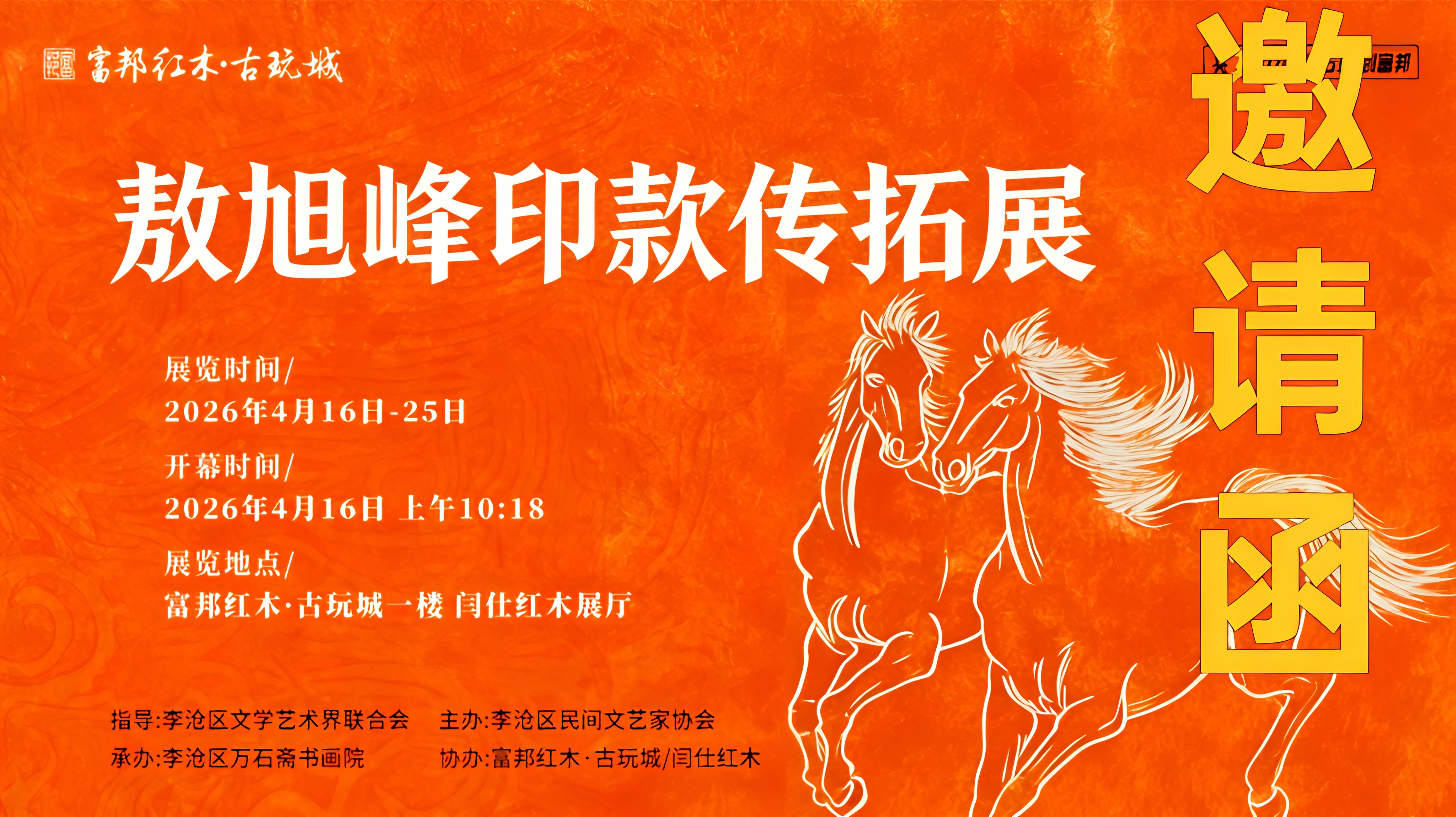 2026年4月16日上午10点18分,“敖旭峰印款传拓展”在李沧区富邦红木·古玩城正式拉开帷幕。本次展览聚焦传统印款传拓技艺,以精品佳作展现金石文化的独特魅力,为广大文艺爱好者奉上一场精彩的传统文化盛宴。