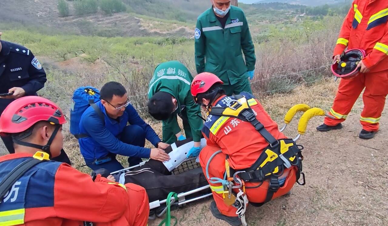 4月15日17时13分,淄博市消防救援局指挥中心接到报警称,沂源县中房·翡翠山景后的马头崮附近,一名30多岁的登山男子不慎从山顶坠崖,跌落约50米后被困于半山腰,伤势严重,急需救援。