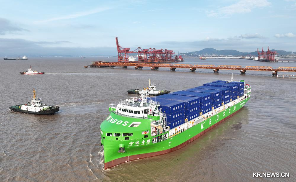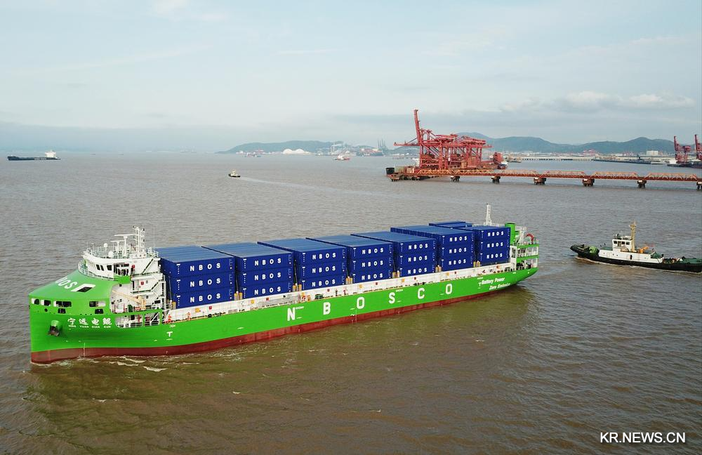 [신화망 중국 닝보 4월17일] 세계 최대이자 중국의 첫 1만t(톤)급 순수 전기 스마트 컨테이너선 '닝위안뎬쿤(寧遠電鯤)'이 15일 정식으로 상업 노선에 투입됐다.
