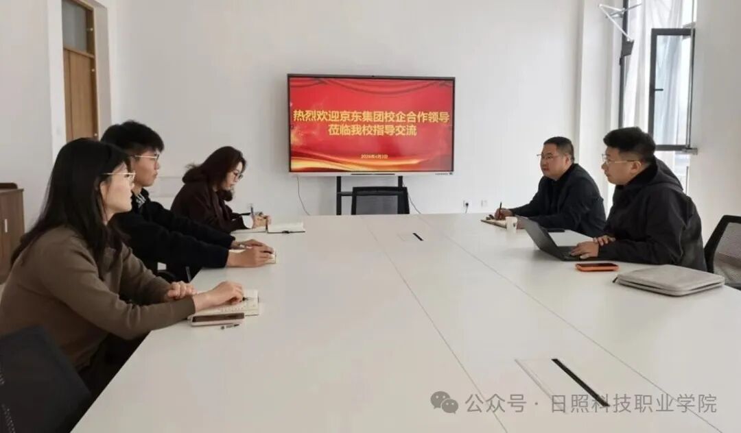 近日,日照科技职业学院财经商贸学院与京东集团山东省校企合作总负责人孙政、京东物流教育山东区经理孙阳举行校企合作专项洽谈会。双方围绕数字商贸人才培养、产教深度融合等议题展开深入交流,并达成多项合作共识。