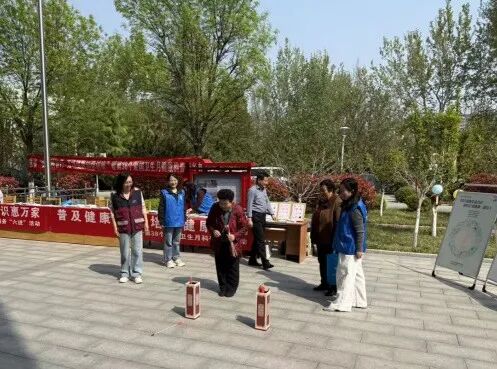 活动现场内容丰富、形式多样,氛围热烈有序。中心志愿者通过现场咨询、定点派发等方式,向村民发放健康生活方式、慢病防控等宣传资料,面对面普及健康知识;在中医药文化主题展示区,志愿者们集中展示中医养生理念与适宜技术,让村民近距离感受传统医学魅力,同时开展中医药知识猜谜、投壶等趣味互动活动,让群众在轻松氛围中学习中医常识,提高健康素养水平。