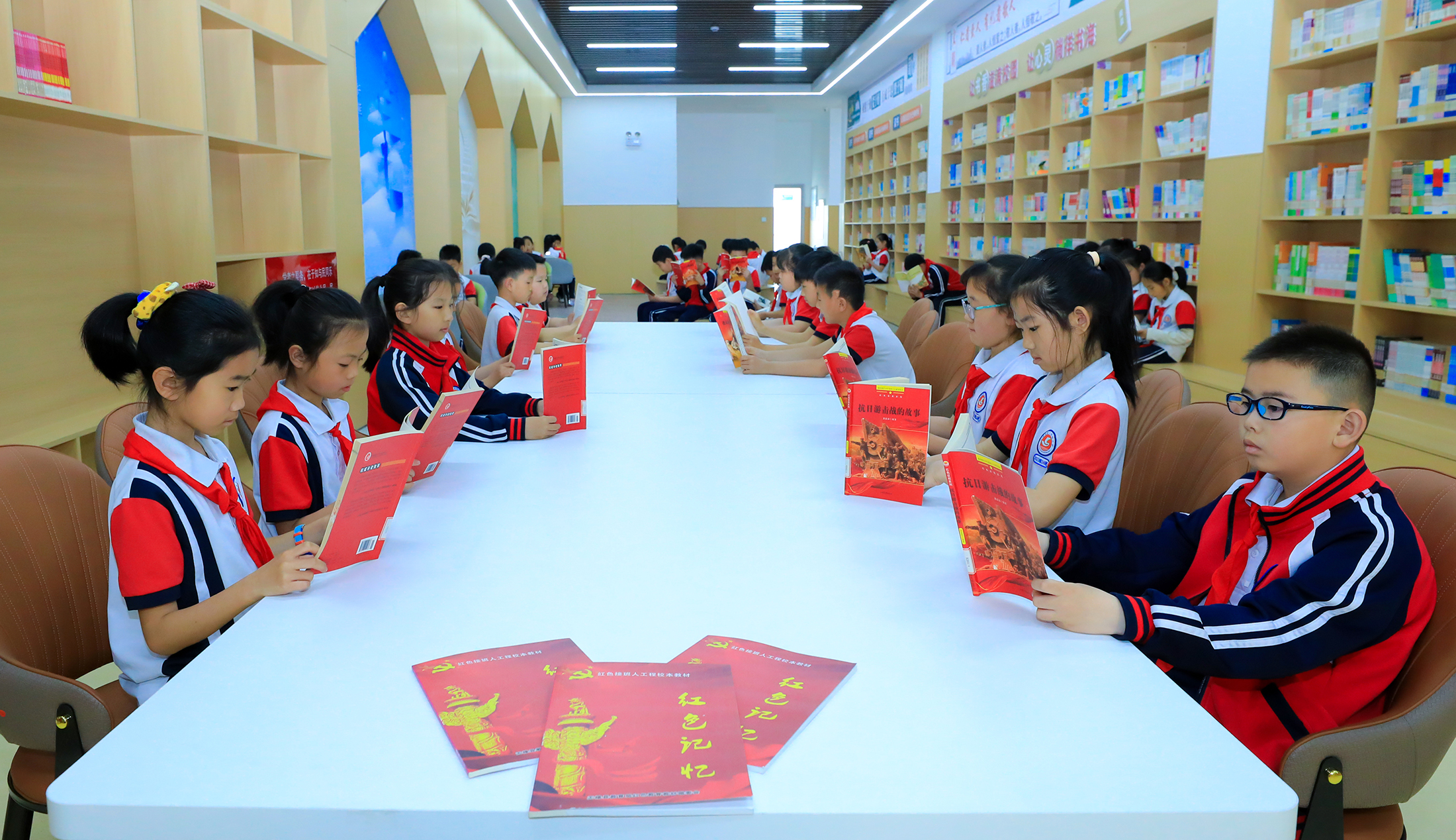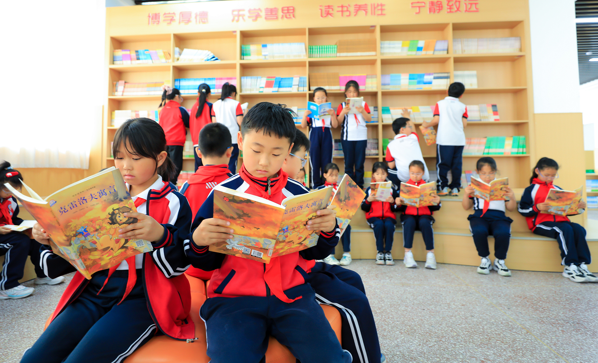 近日,在无棣县第二实验学校棠棣阅览室内,老师带领学生们静心阅读自己喜欢的书籍。