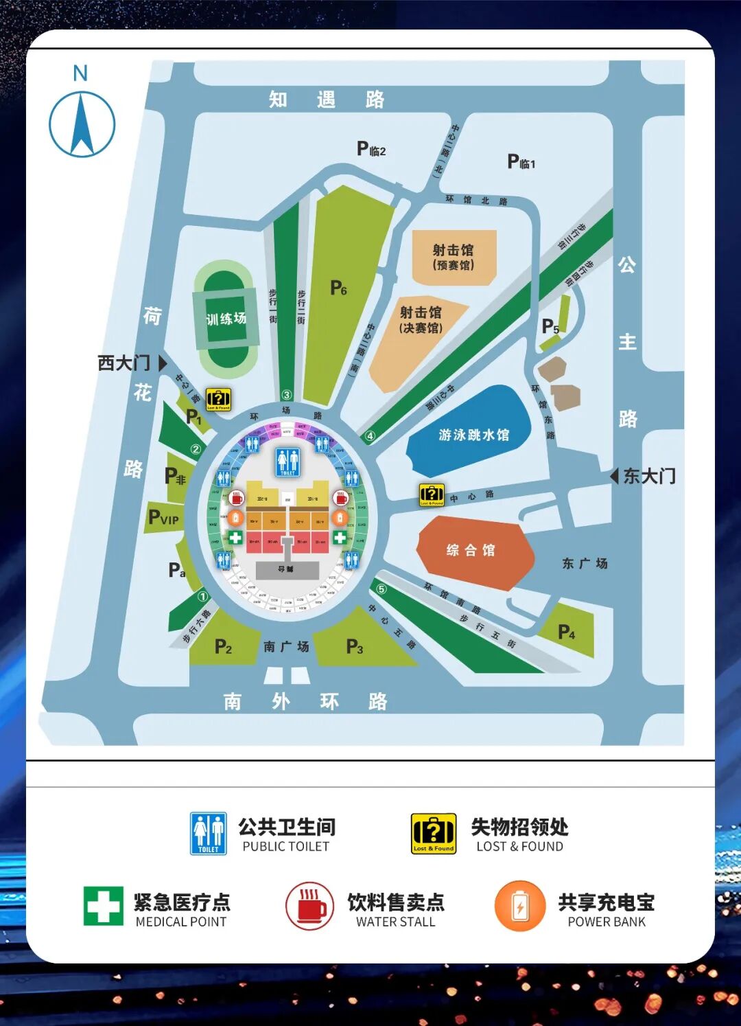 场馆内区域设置便民服务点,满足饮水、充电、如厕、救护、失物招领等需求,守护您的观演体验: