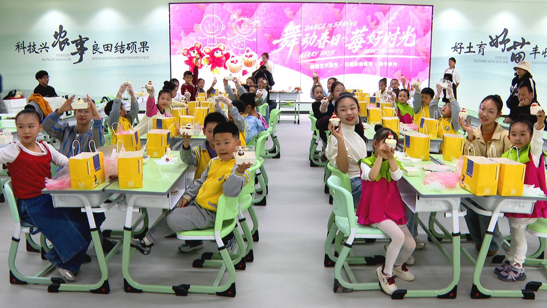 活动现场,伴随着轻快的旋律,孩子们分组走进草莓垄间翩翩起舞,优美的舞姿在春日里绽放,整个草莓大棚里洋溢着青春阳光的气息。舞蹈展示结束后,在基地技术员的引导下,孩子和家长们一起了解了草莓品种、生长周期及脱毒苗培育原理,并亲手采摘、品尝新鲜草莓,感受现代化农业发展带来的丰硕成果。活动还设置了草莓蛋糕DIY和酿草莓酒环节,孩子们在家长的协助下制作蛋糕、密封酿酒,体验动手的乐趣。